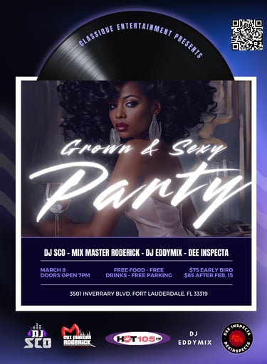 Wrkmode partnered with Classique Entertainment to develop a themed flyer for a middle-aged crowd. Two drafts were created, with the client deciding the theme "Grown & Sexy" was more appropriate for the audience they were interested in reaching.